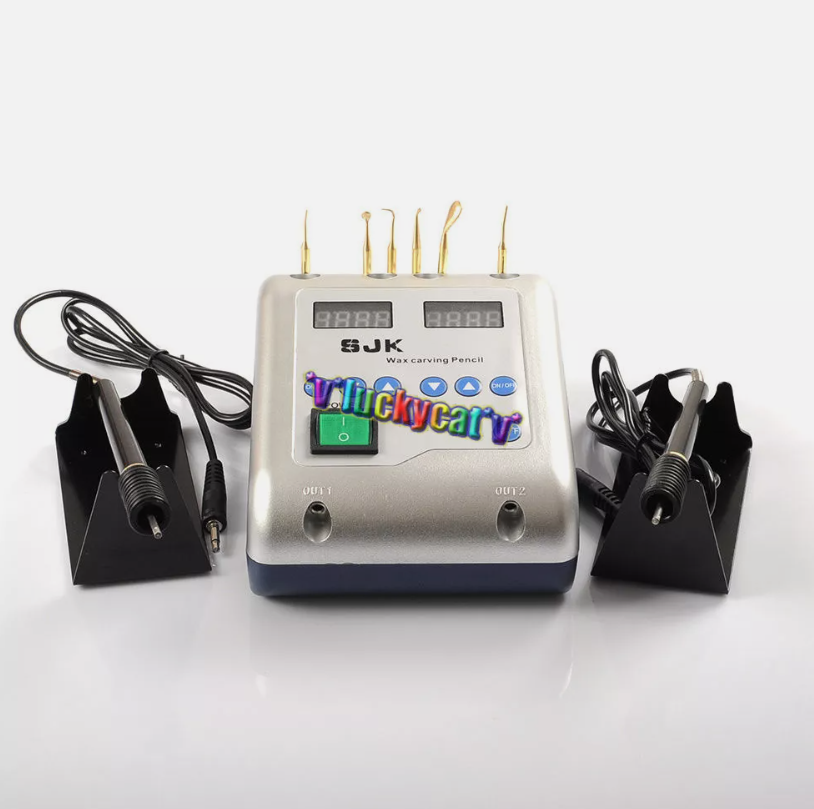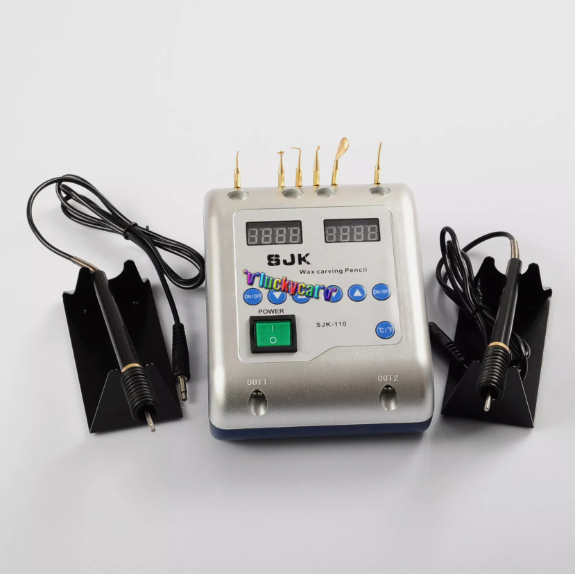 Dental Lab Electric Waxer Carving Knife Pencil Double Pen w/ 6 Wax Tips/Pot